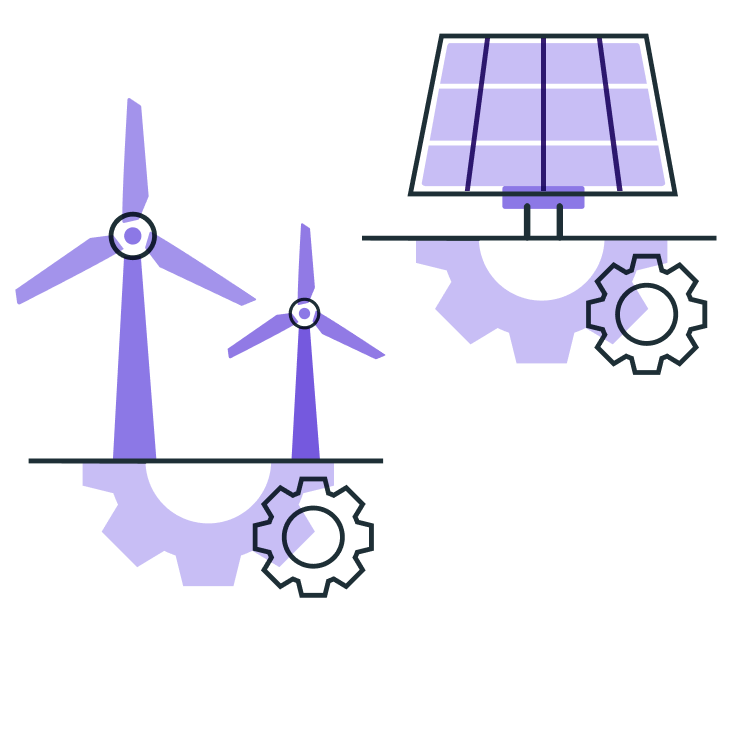 Produktion von Anlagen und Infrastrukturkomponenten Notwendig für die Produktion von primärer Energie, für ihre Umwandlung und die Speicherung, sowie ihre Verteilung und ihren Verbrauch sind als vorgelagerte Prozesse die Produktion von Anlagen und Infrastrukturkomponenten. Dafür zuständig sind spezialisierte Unternehmen z.B. der Öl- und Gas-, Solar- oder Windenergieindustrie. |